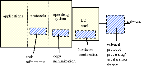 Figure 4-10 illustrates the focal points of this work within a generic host I/O architecture, with each effort typically including only a subset of the shaded components.