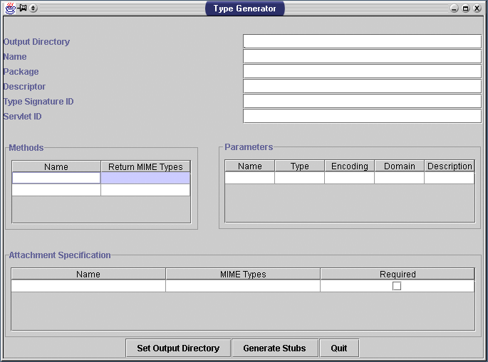 Once all the data is filled in properly, the Generate Stubs button can be pressed to create the servlet and type signature source files.